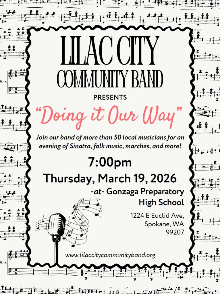 The Lilac City Community Band is a group of 50+ community members who come together to share the love of music with the greater Spokane area. We play everything from Shostakovich to Sousa and everything in between. We are funded solely by donations. If you are interested in contributing, please visit the link below.